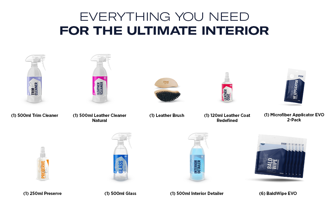 Le Kit Intérieur de GYEON est l’ensemble complet pour maintenir un intérieur de voiture impeccable. Connu comme le meilleur kit de nettoyage intérieur de voiture, il contient une gamme de produits soigneusement sélectionnés qui nettoient, protègent et rajeunissent chaque surface intérieure de votre voiture. Qu’il s’agisse du tableau de bord, des sièges ou des tapis, ce kit vous permet de conserver l’aspect neuf de chaque recoin de votre véhicule. S’appuyant sur des années d’expertise dans le domaine de l’esthétique automobile, ce kit est indispensable pour tous ceux qui prennent au sérieux l’environnement intérieur de leur véhicule.