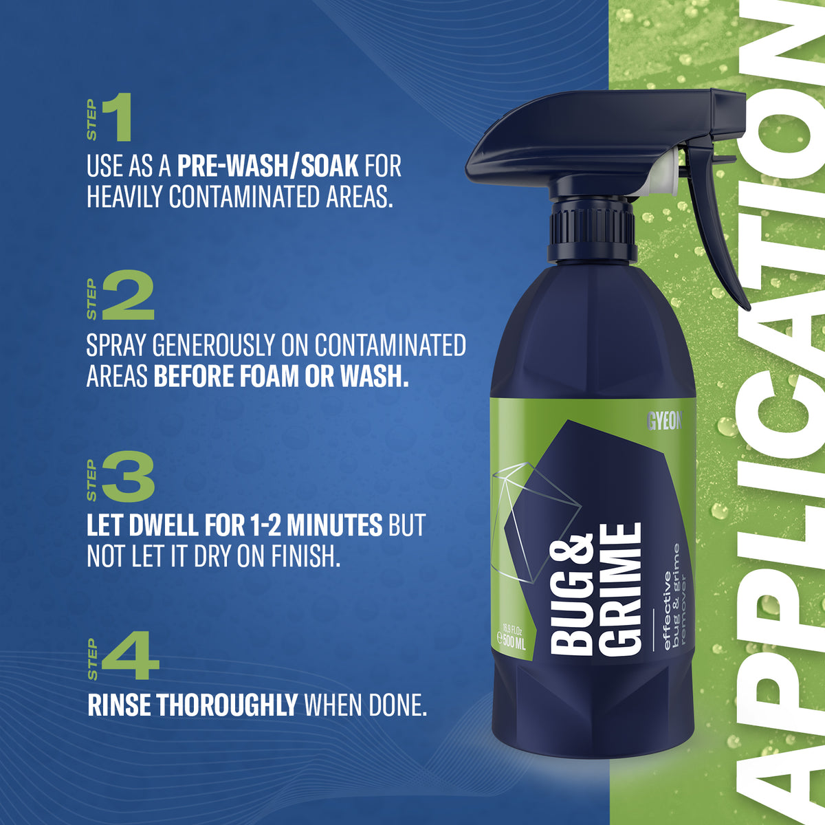 Le Q²M Bug & Grime est un nettoyant puissant spécialement formulé pour éliminer les insectes, résidus organiques et saletés routières tenaces.